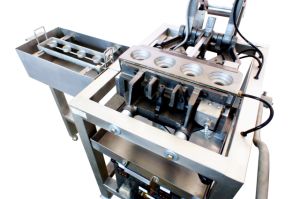 The moulds are opened and closed by levels. The moulds are provided with a special closing device. After the heating, the cones are automatically ejected into a container below, when the lower mould is opened. These machines can be operated by any person with ease.